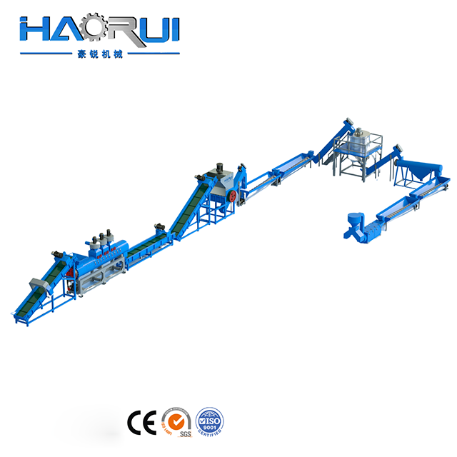 This line handles a series of multiple stages process components,invovling de-baling,sorting,crushing,hot and cold washing and drying.