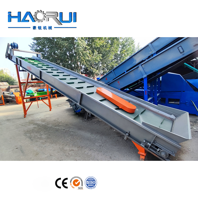 The PP PE plastic bottles cleaner employs a series of interconnected machine and equipment,including bale opener machine,conveyor belt,trommel screen,conveyor,manual sorting table,conveyor belt,PP PE plastic crusher machine,screw loader,1st auto floating washing tank,screw loader,2nd auto floating washing tank,screw loader,hot washing tank,screw loader,high speed friction washer,3rd auto floating washing tank,screw loader,4th auto floating washing tank,screw loader,horizontal dewatering machine,hot air drying system,zig-zag label separator,automatic packing system,electric control panel and free spare parts to use a series of multi-stage process components as follows.