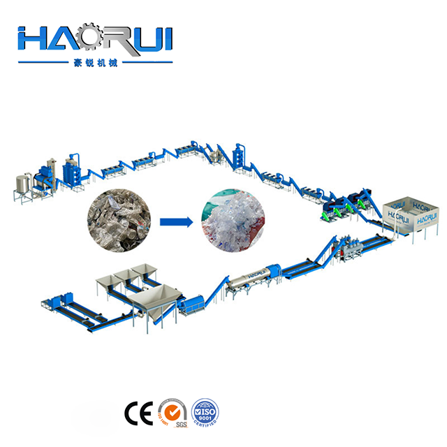 This washing line handles a series of multiple stages process components,invovling debaling,sorting,crushing,washing (including hot washing),dewatering and drying.