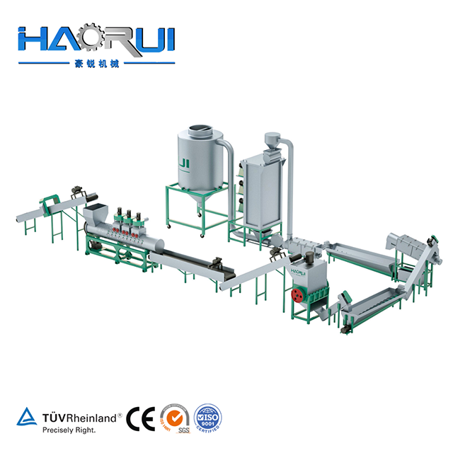 This pe film pp woven bag recycling line handles a sequence of multi-stage process,involving shredding the waste into small pieces,followed by multi-stage washing (pre-wash,friction wash,rinsing with hot/cold water to remove dirt,grease,and glue,dewatering,and drying to remove moisture to outputing clean flakes ready for pelletizing into recycled plastic pellets.