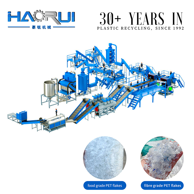 A food grade PET bottle washing recycling line is capable of turning used PET bottles into ultra-clean flakes for new food-grade products through crushing,hot/cold washing,friction,flotation,and drying.