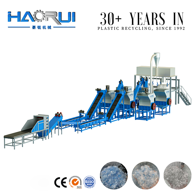 تصنيع الآلات Haorui باعتبارها واحدة من الشركات المصنعة المهنية في الصين آلة إعادة تدوير زجاجات PET ، يمكننا توفير الحل المثالي للطعام R-PET لإعادة تدوير نفايات زجاجات PET بما في ذلك الغسيل والبثق والتكوير. حتى بعد غسل رقائق زجاجات PET عالية الجودة، يمكن تصنيعها في خطوة واحدة إلى صفائح R-PET الغذائية.