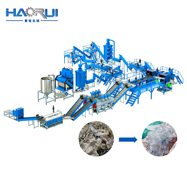 Genbrugslinjen til PET-flaskevask beskæftiger en række indbyrdes forbundne maskiner og udstyr, inklusive plastknusermaskine på pladeniveau til størrelsesreduktion, en højhastighedsfriktionsvaskemaskine og varm vaskemaskine til at fjerne forurenende stoffer, et flydende tanksystem til at adskille PET fra andre materialer, en afvandingsmaskine, forskellige transportører til transport af plastmaterialer, en platformsopbevaring, en maskine til transport af plastmaterialer, en platformsopbevaring, eller en pladeåbner, også inkluderet.