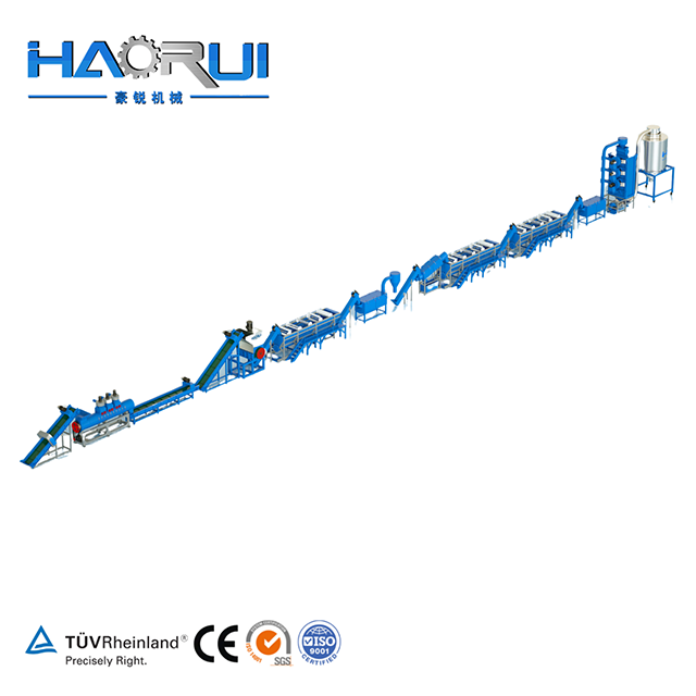 Der Die Recyclinglinie zum Waschen von PET-Flaschen ist mit 4 bis 5 schwimmenden Tanks und 2 bis 3 Hochgeschwindigkeits-Reibungswaschmaschinen ausgestattet und stellt sicher, dass die PET-Flocken sauber sind, bis zur B2B-Qualität. 2-3 Zickzack-Trenner zum Trennen von PVC und Etiketten, der PVC-Anteil der PET-Flocken beträgt weniger als 30 ppm.