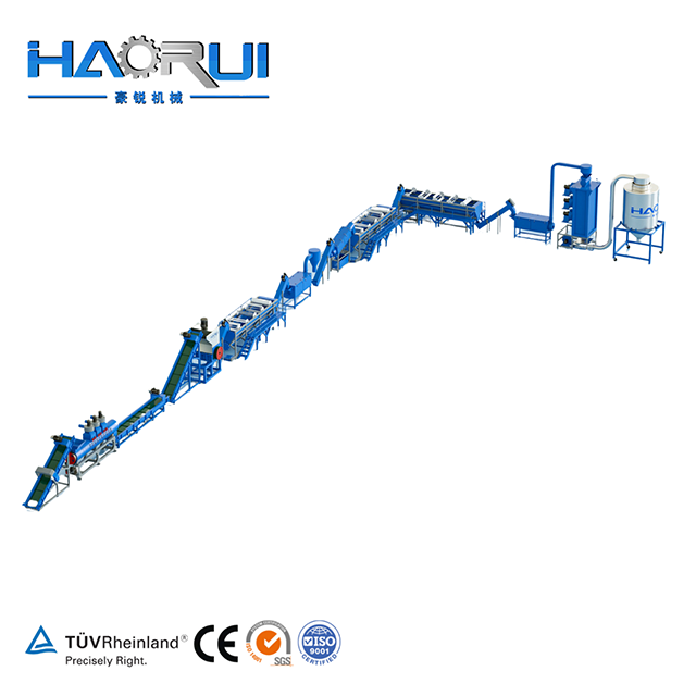 Der Wirbelstromabscheider ist für die Trennung von Metall- und Nichteisenmetallen, Aluminium usw. von den PET-Flocken vor dem Verpacken verantwortlich. Vor dem Verpacken erfolgt eine kontinuierliche Überwachung und Prüfung, um sicherzustellen, dass nur hochwertige Flocken ausgegeben werden, die der Lebensmittelqualität entsprechen, und diese dann automatisch in Jumbo-Beuteln verpackt werden.
