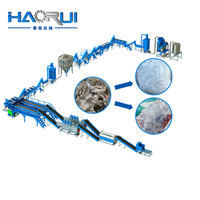 விரிவான உபகரணப் பட்டியல்: விரிவான உபகரணப் பட்டியலில் டிரம் திரைகள், முன் வாஷிங் மெஷின்கள், பேலர்கள், டீஹைட்ரேட்டர்கள் மற்றும் மிதவை இயந்திரங்கள் ஆகியவை அடங்கும், இவை ஒவ்வொன்றும் முக்கியப் பங்கு வகிக்கின்றன. டிரம் திரையானது பிளாஸ்டிக் பாட்டில்களை பூர்வாங்கமாக பிரிப்பதற்கும், அசுத்தங்கள் மற்றும் அழுக்குகளை அகற்றுவதற்கும், அடுத்தடுத்த கட்டங்களில் பயனுள்ள செயலாக்கத்தை உறுதி செய்வதற்கும் பயன்படுத்தப்படுகிறது. முன் சலவை இயந்திரம் PET பிளாஸ்டிக் பாட்டில்களை ஆழமாக சுத்தம் செய்து எச்சங்கள் மற்றும் கறைகளை நீக்கி, பிளாஸ்டிக் பாட்டில்களின் மறுபயன்பாட்டு விகிதத்தை மேம்படுத்துகிறது. பேலர் கழிவு பிளாஸ்டிக் பேக்கேஜிங் பொருட்களை விரைவாக அவிழ்த்து, அடுத்த கட்ட துண்டு துண்டிற்கு வசதியாக இருக்கும். டிஹைட்ரேட்டர் பிளாஸ்டிக் பாட்டில்களில் இருந்து ஈரப்பதத்தை அதிவேக சுழற்சி மூலம் நீக்குகிறது, ஆற்றல் நுகர்வு மற்றும் அடுத்தடுத்த செயலாக்க நிலைகளில் நேர செலவுகளை குறைக்கிறது. மிதவை இயந்திரம் மிதப்புக் கொள்கையைப் பயன்படுத்தி துண்டுகளை பிரிக்கிறது, வெவ்வேறு அடர்த்தி கொண்ட பொருட்களை வேறுபடுத்தி மீண்டும் பயன்படுத்த அனுமதிக்கிறது.
