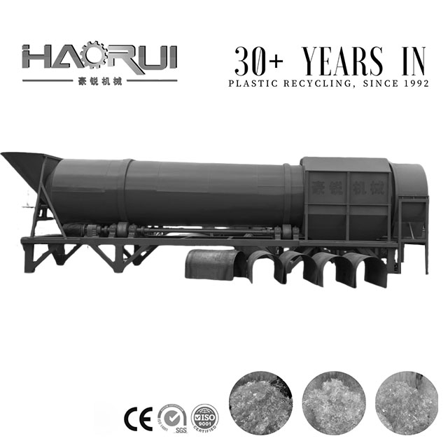 Plastik kırma makinası kırma işlemine başlamadan önce şişelerin üzerinde bulunan kum, taş ve hatta çamur gibi yabancı maddeleri uzaklaştırabilme özelliğine sahiptir. Bu ön yıkama, plastiği temizlemek, üretim maliyetini düşürmek ve PET şişe etiket sökme makinası gibi aşağıdaki makinalara verilen zararı azaltmak için çok önemli bir proses bileşenidir.